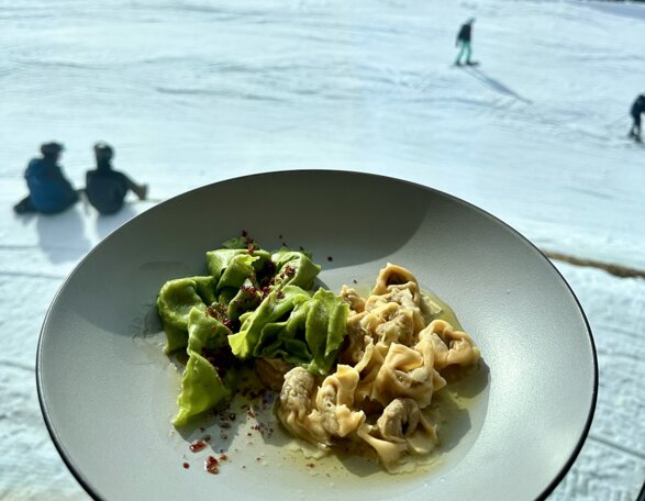 On this day, the mountain hut's menu will feature only two tortellini starters. Guests can choose between the classic Valeggio tortellini, known as 'Nodo d'amore', and the specially created 'Latemar' tortellini. The latter combines the fine tradition of Valeggio tortellini with regional products from the Latemar area, such as alpine cheese with the aroma of hay schnapps produced in South Tyrol's Eggental Valley.
